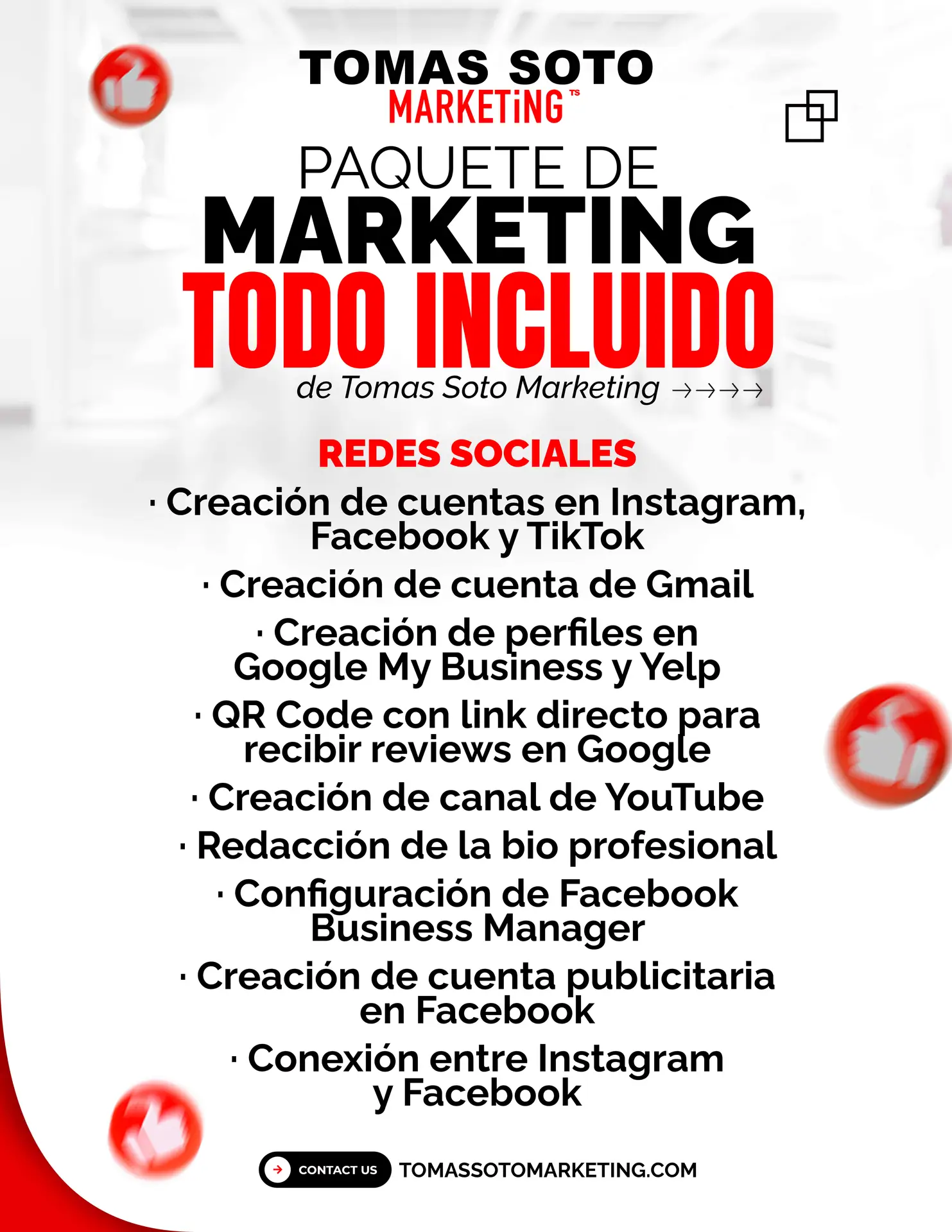 Las redes sociales estarán configuradas y listas para publicar. Desde la biografía de tu empresa, hasta el Business Manager y los perfiles en Instagram, Facebook, TikTok y Google, tendrás todo conectado para que tus clientes te encuentren, te sigan y confíen en ti desde el primer vistazo.